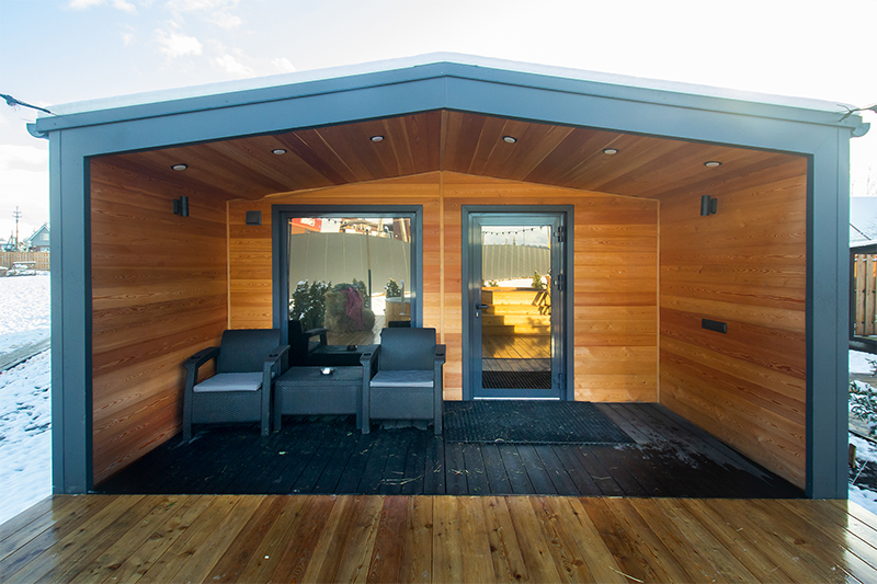 Беседка с оборудованной зоной для барбекю (мангалом).